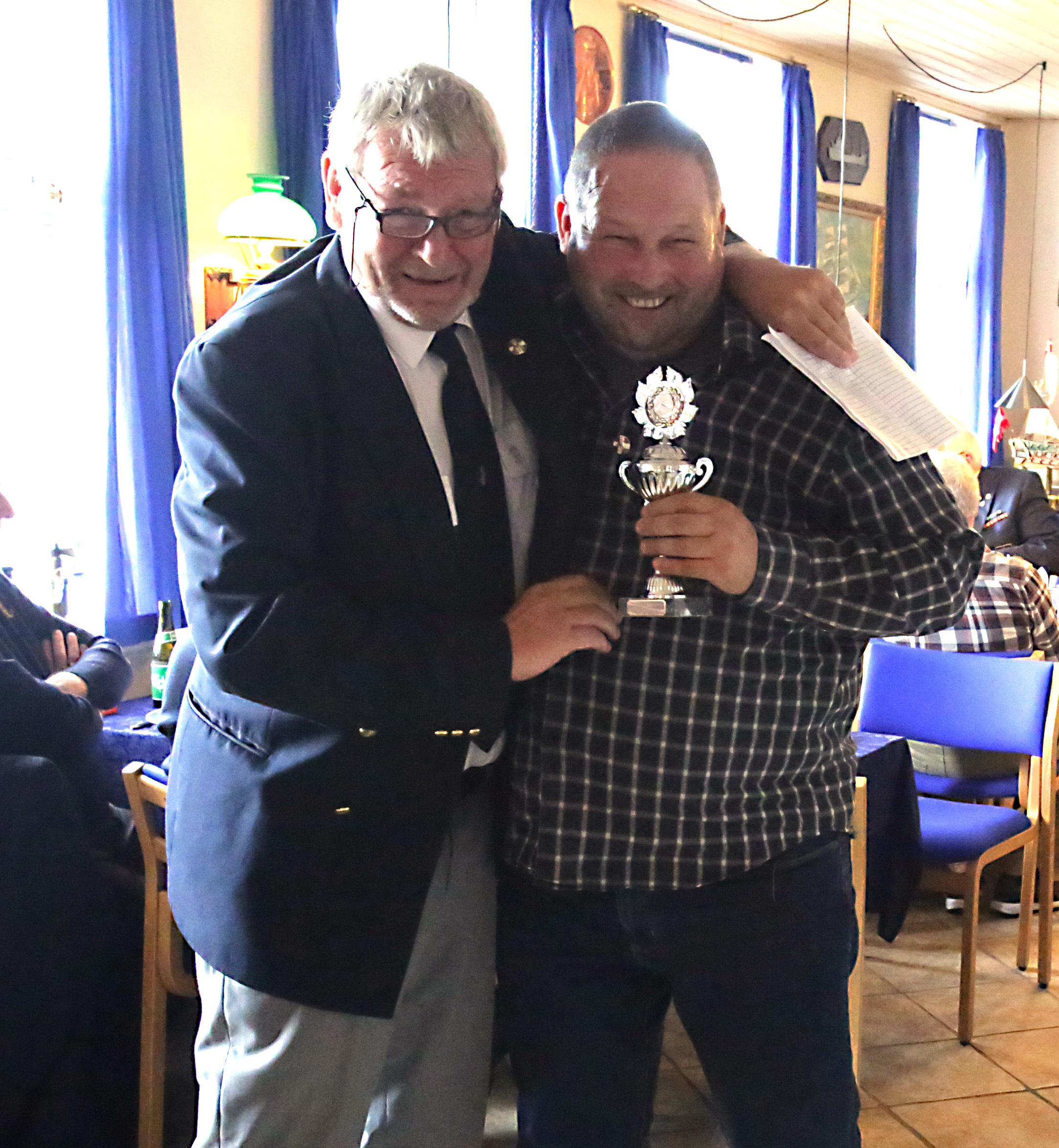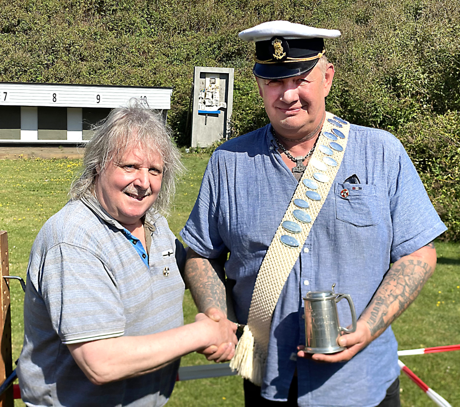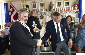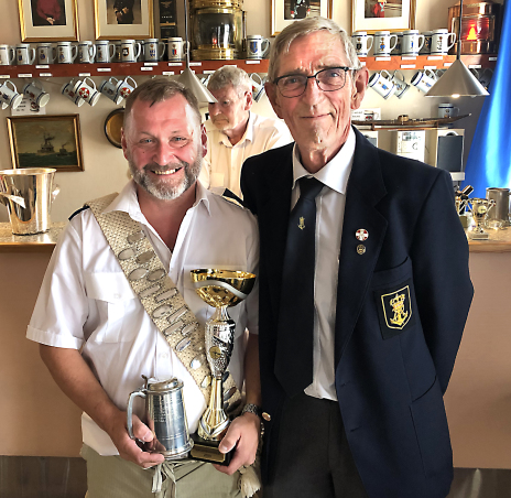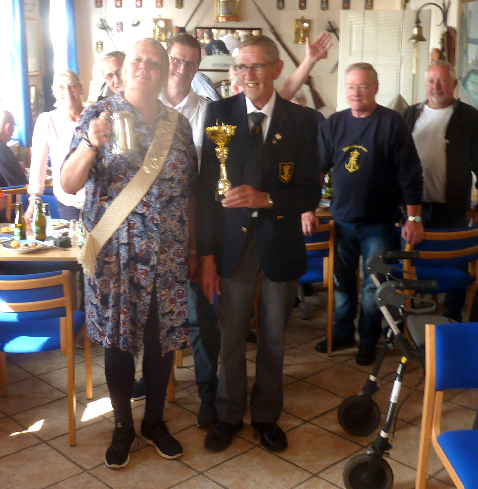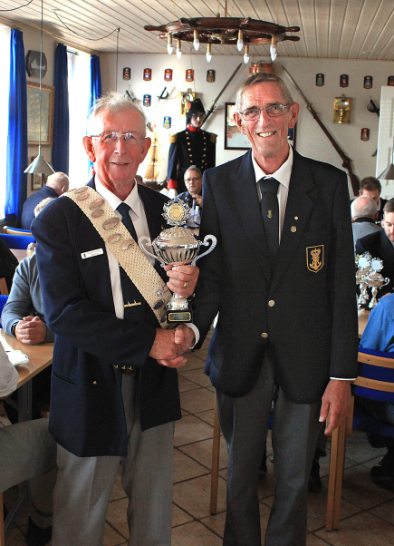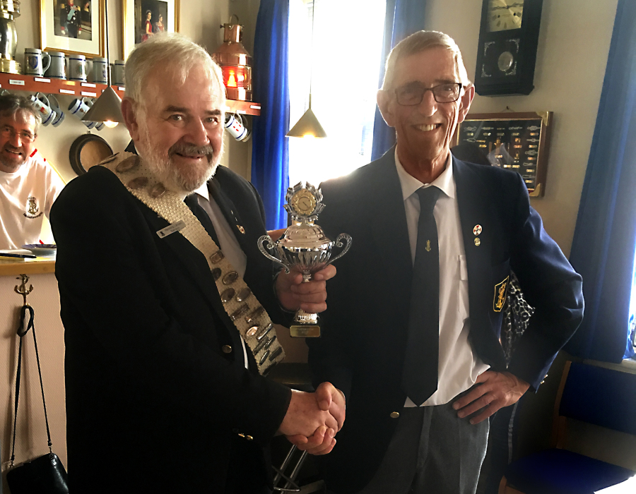 På billedet overrækker Nyk.F. Marineforenings formand Karsten Laugesen pokalen til Nakskovs Henning Larson